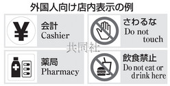 日本經(jīng)濟(jì)產(chǎn)業(yè)省出臺(tái)有關(guān)店內(nèi)標(biāo)識(shí)的指南,要求盡量使用英語(yǔ)、圖形符號(hào)及漢字。(共同社)