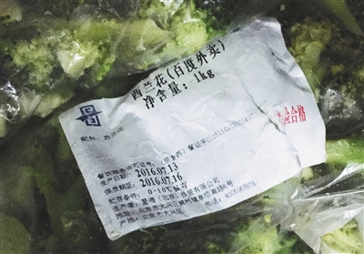 只見加熱后袋裝西蘭花標(biāo)簽上的生產(chǎn)日期已被浸泡模糊。一名女店員直接用剪刀剪開兩袋,倒入盆內(nèi)清洗,有些西蘭花顏色已變黃。該店員直接將變了顏色和蔫了的挑出,扔進(jìn)垃圾桶。西蘭花的外包裝保質(zhì)期顯示為7月13日至7月16日。凈含量為1kg。對(duì)于過期西蘭花為何還要用?一名女店員說:“今天用西蘭花配菜都是過期的,不用咋辦?”
