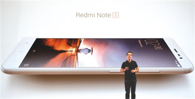 今年3月3日,在印度首都新德里,小米科技推出專門針對印度市場的紅米Note 3手機(jī)。圖為小米科技全球副總裁雨果·巴拉在發(fā)布會上介紹紅米Note 3手機(jī)。