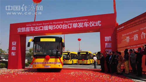 在“一帶一路”的大背景下,憑借以“技術(shù)、品質(zhì)、商業(yè)模式”構(gòu)筑的品牌競爭力,安凱客車脫穎而出成為中國優(yōu)秀品牌在緬甸展示“中國制造”風(fēng)采的榮耀代表。4月11日,安凱客車與仰光公共巴士有限公司簽署了500臺 10.5米安凱牌天然氣公交車采購協(xié)議,合同金額2800 萬美元(約合人民幣1.93 億元)。