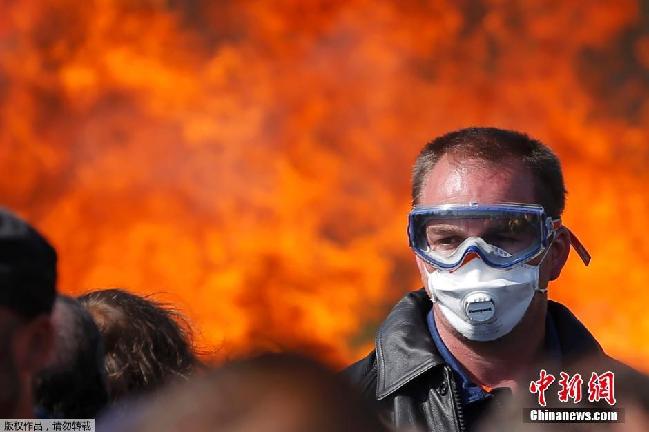 5月29日消息,近日,法國(guó)多個(gè)地區(qū)爆發(fā)示威,抗議勞工改革。防暴警察在巴黎和其他城市與抗議者對(duì)峙,77人被捕,15個(gè)警察受傷,汽車和商店遭到洗劫。圖為法國(guó)多杰斯的示威者設(shè)立燃燒路障,對(duì)勞工改革表示抗議。