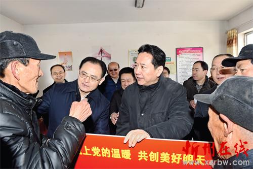 在鵝城鎮(zhèn)城莊村,李小鵬看望了特困戶張文俊和楊二則,詳細(xì)了解家庭收入、農(nóng)村養(yǎng)老保險(xiǎn)、低保和社會(huì)救助等政策落實(shí)情況。他說(shuō),黨中央、國(guó)務(wù)院十分關(guān)心困難群眾的生產(chǎn)生活,作出了大力推進(jìn)脫貧攻堅(jiān)的戰(zhàn)略部署。省委、省政府認(rèn)真貫徹落實(shí)中央決策部署,確立了確保我省與全國(guó)同步、全省農(nóng)村特別是貧困地區(qū)與全省同步全面建成小康社會(huì)的奮斗目標(biāo)。我們的全面小康不會(huì)落下一個(gè)貧困村、一個(gè)貧困戶。只要我們共同努力,勤勞致富,大家的日子一定會(huì)越過(guò)越好。他要求當(dāng)?shù)卣痛濉皟晌必?fù)責(zé)人,既要做好社會(huì)救助工作,更要按照扶貧對(duì)象精準(zhǔn)、項(xiàng)目安排精準(zhǔn)、資金使用精準(zhǔn)、措施到戶精準(zhǔn)、因村派人精準(zhǔn)、脫貧成效精準(zhǔn)的要求,扎實(shí)做好精準(zhǔn)扶貧工作,幫助貧困戶早日脫貧致富。