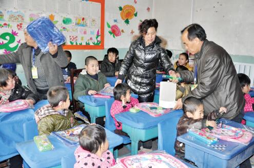 石建華在各所鄉(xiāng)村學校發(fā)放助學物資