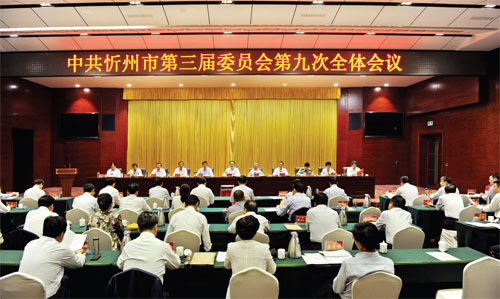 圖為中共忻州市第三屆委員會第九次全體會議會場。(本報記者 劉紀森 攝)