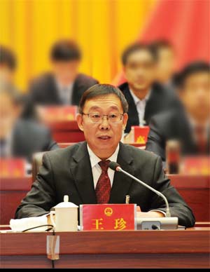 市人大常委會主任王珍主持閉幕大會并講話。本報記者 劉紀森 攝