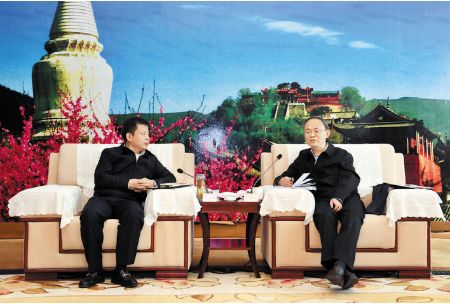 市委書記鄭連生會見山西文旅集團(tuán)董事長王文保。 本報記者 劉紀(jì)森 攝