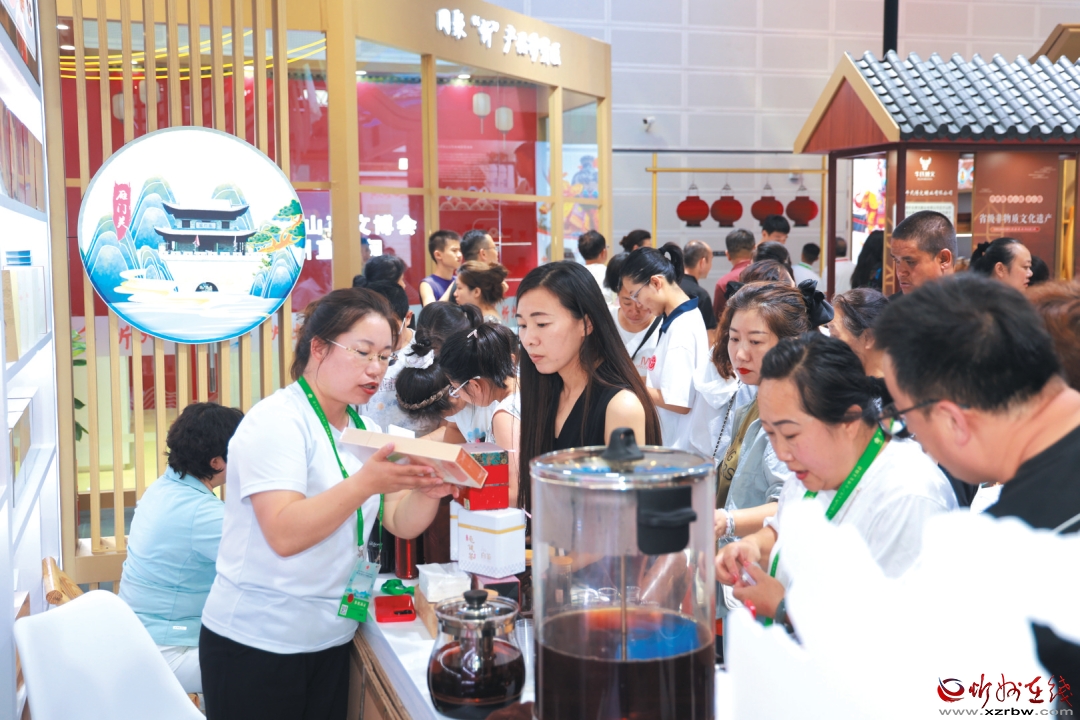 觀眾在第七屆山西文博會忻州展廳購買特優(yōu)農(nóng)產(chǎn)品。張存良攝