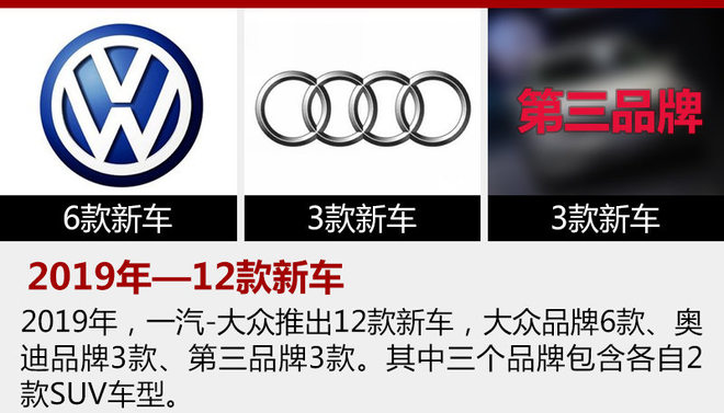 2017年進(jìn)入下半年,一汽-大眾就開始籌劃2025戰(zhàn)略,以完成更高的銷量目標(biāo)和更長(zhǎng)遠(yuǎn)的發(fā)展。同時(shí),官方還表示將在兩年內(nèi)推出23款新車,并包含大眾、奧迪以及第三品牌。此前,一汽-大眾汽車有限公司企業(yè)品牌資訊發(fā)言人、公關(guān)總監(jiān)黃龍向網(wǎng)通社表示:“在未來(lái)的車型投放方面, 2018年共有11款新品投放,其中大眾品牌7款,奧迪品牌4款?!?/p>