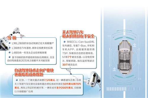 當(dāng)前,L1和L2級(jí)別半自動(dòng)駕駛已經(jīng)大規(guī)模量產(chǎn);L3級(jí)將在今年落地,明年會(huì)有更多應(yīng)用;L4級(jí)也有一些龍頭企業(yè)在積極探索。但是,針對(duì)“2030年左右就可實(shí)現(xiàn)無人駕駛產(chǎn)業(yè)化”的預(yù)測,專家則持謹(jǐn)慎態(tài)度。要真正實(shí)現(xiàn)完全意義上的無人駕駛,還面臨著安全、成本等一系列難題,需要產(chǎn)業(yè)界和全社會(huì)合力推動(dòng)解決。