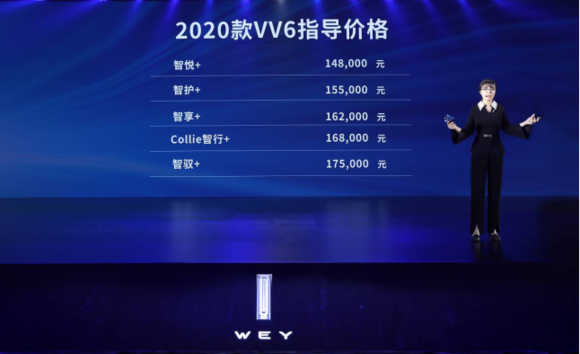 長城汽車股份有限公司副總裁兼WEY品牌營銷總經(jīng)理柳燕公布2020款VV6價格