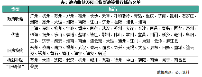 除了在銷(xiāo)售端推動(dòng)“以舊換新”外,“以舊換新”也成為樓市“去庫(kù)存”工具箱中的一部分。