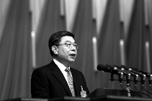 昨日,市人大常委會(huì)主任杜德印作市人大常委會(huì)工作報(bào)告。 北京晨報(bào)記者 王穎/攝