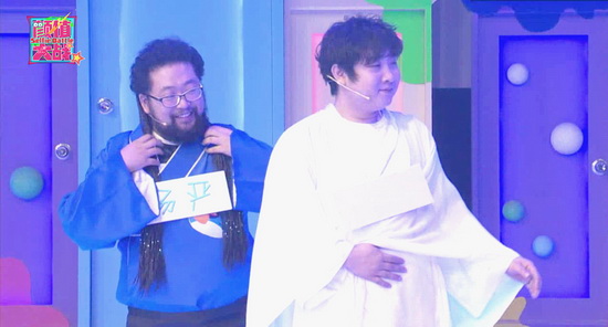 一開場(chǎng)兩人被發(fā)糖——“選妃”可抱美人歸。遮擋住臉龐的各位“妃子”穿著古風(fēng)裙,俏麗非凡的樣子讓兩位嘉賓欣喜不已,想著總算可以和漂亮的姑娘們搭檔了,誰料半路殺出王守英,頭戴瓜子身披綠紗,一身自制衣服就劫走了喬杉,看著這二人配對(duì)成功,修睿還做著自己會(huì)和小美女搭檔的美夢(mèng),然而張大大直接判決,修睿配對(duì)小甜甜。