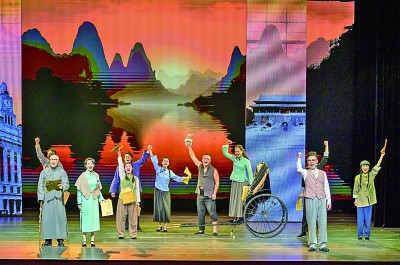 4月20日晚,紀(jì)念西南劇展80周年暨第八屆全國(guó)話劇優(yōu)秀劇目展演在廣西省立藝術(shù)館拉開(kāi)帷幕。圖為現(xiàn)場(chǎng)劇照。粟俊攝/光明圖片