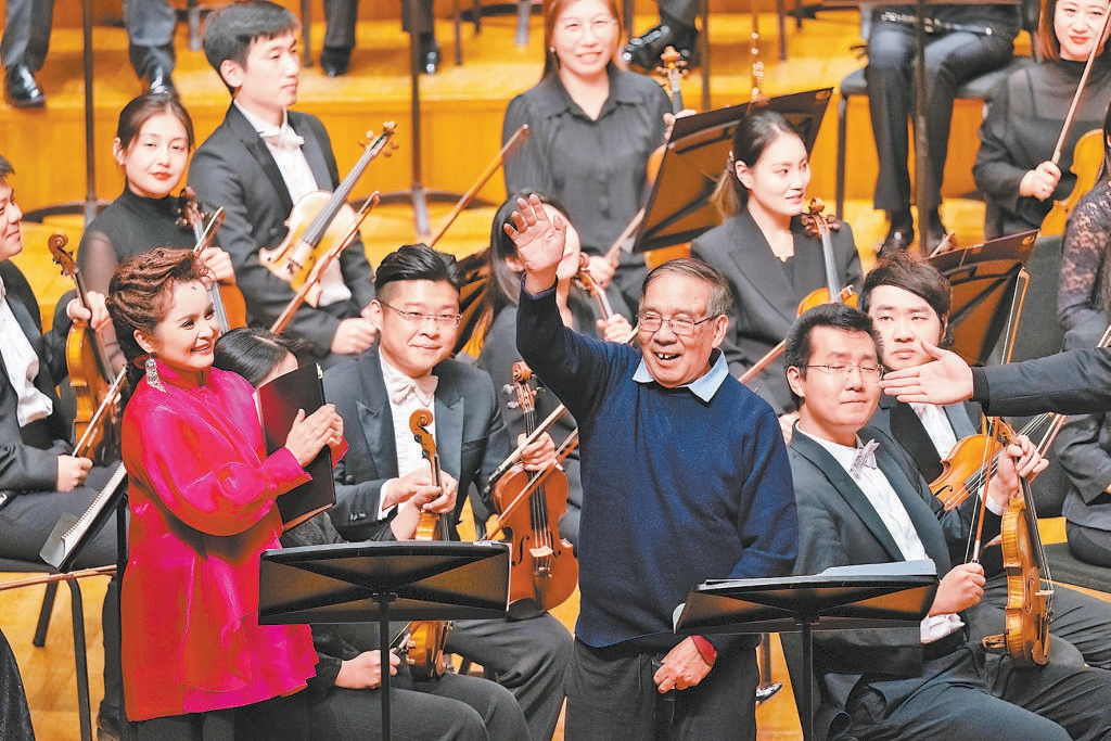 吳碧霞、黃訓(xùn)國(guó)的演唱同樣精彩,特別是在《小河淌水》《看秧歌》等選段中,吳碧霞的美妙高音與混聲合唱的互動(dòng)鮮明流暢,總博得熱烈喝彩。最后一曲《孳孳》唱響,余韻中,鮑元愷登臺(tái)向觀眾致意,筆耕不輟、用幾十載時(shí)光豐盈“炎黃風(fēng)情”的作曲家,收獲全場(chǎng)經(jīng)久不息的掌聲。