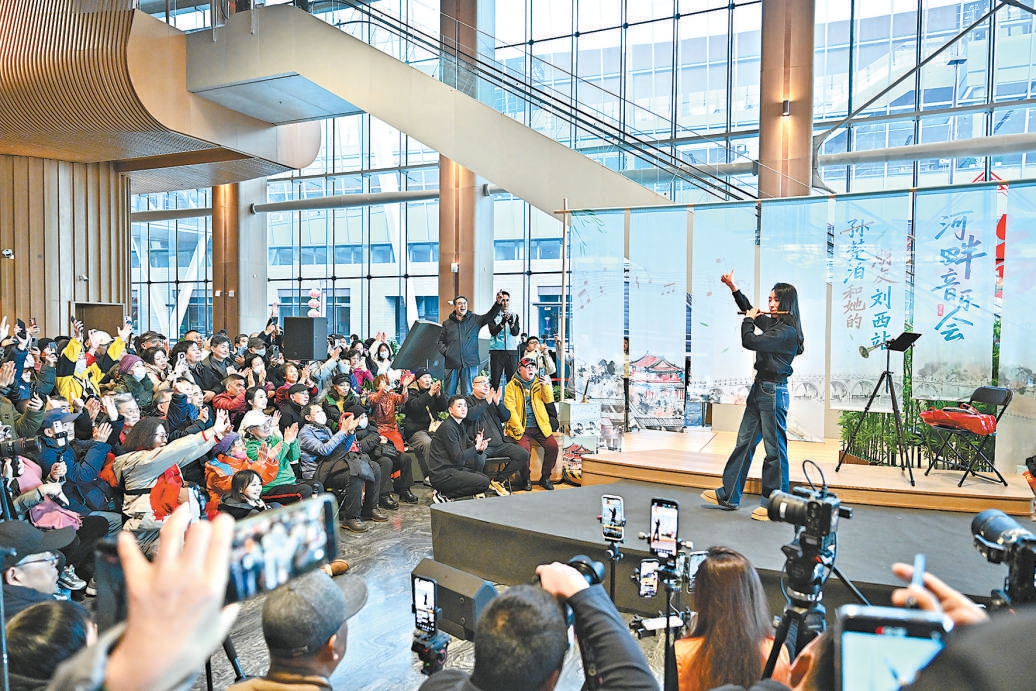 “國民閨女”、青年笛簫演奏家孫楚泊在北京大運(yùn)河博物館演出。