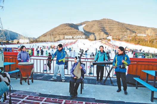 北京民族樂團(tuán)“空降”軍都山滑雪場。