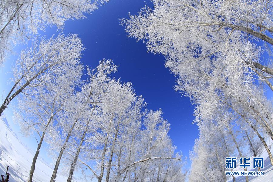 1月3日在新疆阿勒泰地區(qū)富蘊(yùn)縣吐爾洪鄉(xiāng)拍攝的霧凇美景。藍(lán)天映襯下的冰雪世界顯得一片肅穆。 新華社發(fā)(丁寧 攝)