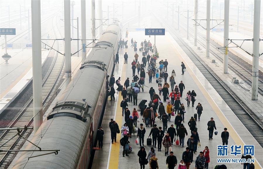 一輛動車組列車駛離石家莊火車站(1月9日攝)。 1月10日零時起,全國鐵路實(shí)行新的列車運(yùn)行圖,增開旅客列車285.5對,其中增開動車組列車281.5對。運(yùn)行圖調(diào)整后,全國鐵路開行旅客列車總數(shù)達(dá)到3142對,其中動車組列車1980.5對。新華社記者 牟宇 攝