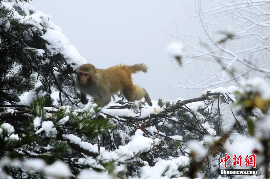 2月22日正值元宵佳節(jié),湖南張家界核心景區(qū)武陵源喜降春雪。在黃石寨景區(qū),成群的野生獼猴或在雪中追逐戲鬧,或在樹枝上攀爬跳躍,或蜷縮著身子賣萌,成為張家界武陵源的一道春季新景。吳勇兵 攝