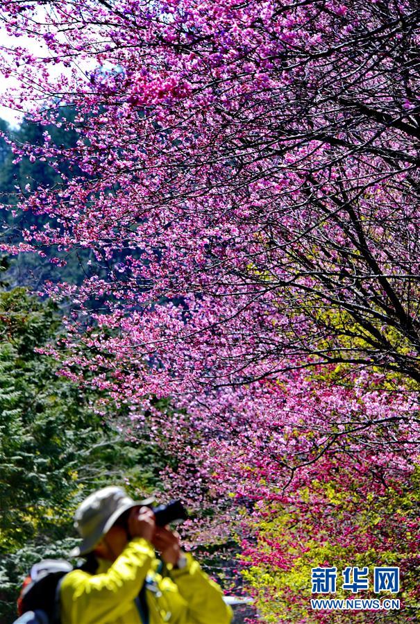 2月29日,游客在武陵農(nóng)場(chǎng)賞花。初春的臺(tái)灣,氣溫回升,位于海拔1700多米的臺(tái)中武陵農(nóng)場(chǎng),漫山遍野的櫻花競(jìng)相開(kāi)放,美不勝收,吸引了四面八方的游客前來(lái)觀賞。 新華社記者張國(guó)俊 攝