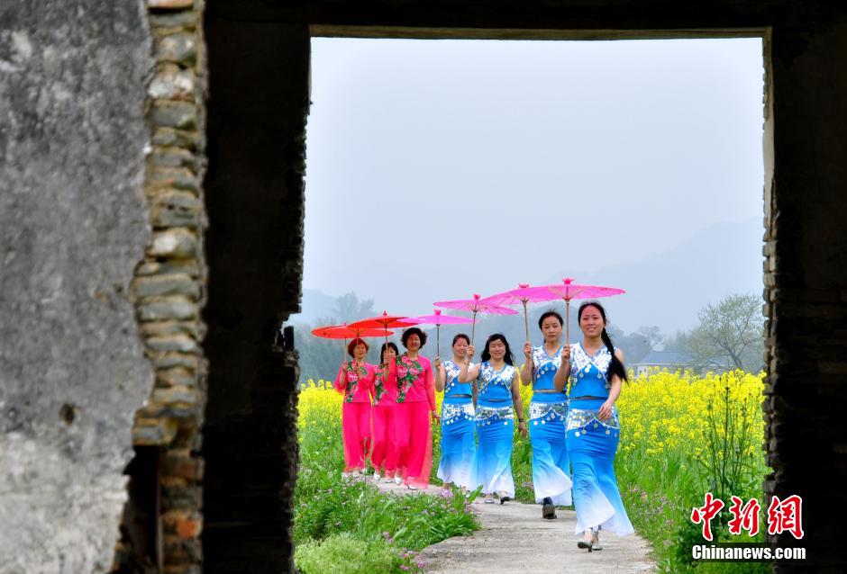 3月20日,江西省德興市??阪?zhèn)杜村婦女在田間花?!白咝恪薄.?dāng)日,江西德興市海口鎮(zhèn)杜村一批家庭婦女以千畝油菜花海為舞臺(tái),展示自己的才藝形象,希望宣傳家鄉(xiāng)的自然生態(tài)與人文歷史,擴(kuò)大旅游知名度和影響力。德興市海口鎮(zhèn)杜村交通便利,自然風(fēng)光優(yōu)美,村內(nèi)有歷史古跡和名木古樹。 胡敦煌 攝