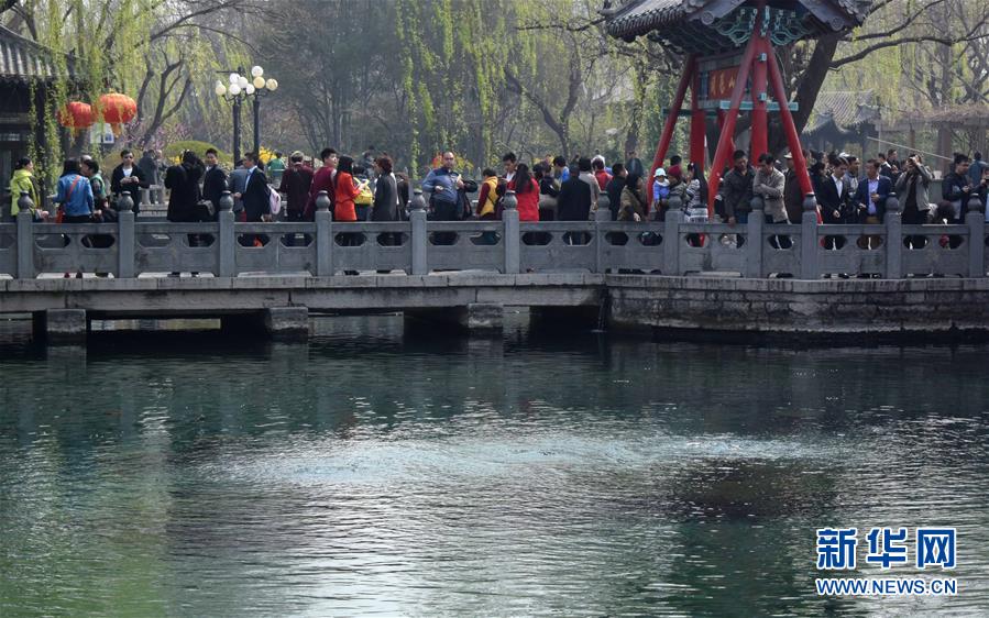 3月22日,濟南趵突泉水位跌破紅色警戒線,噴涌乏力。當日,濟南趵突泉實時水位降至27.59米,跌破27.60米的紅色警戒線,面臨停噴危險。趵突泉水位走低的主要原因是春季干旱及春灌的影響。新華社記者 徐速繪 攝