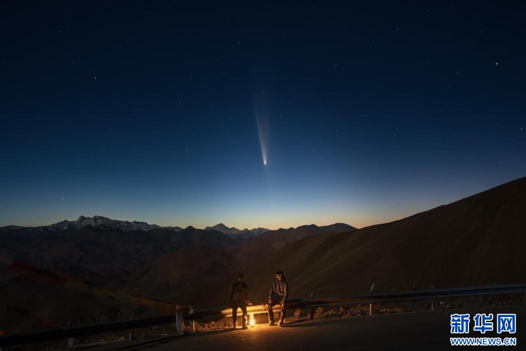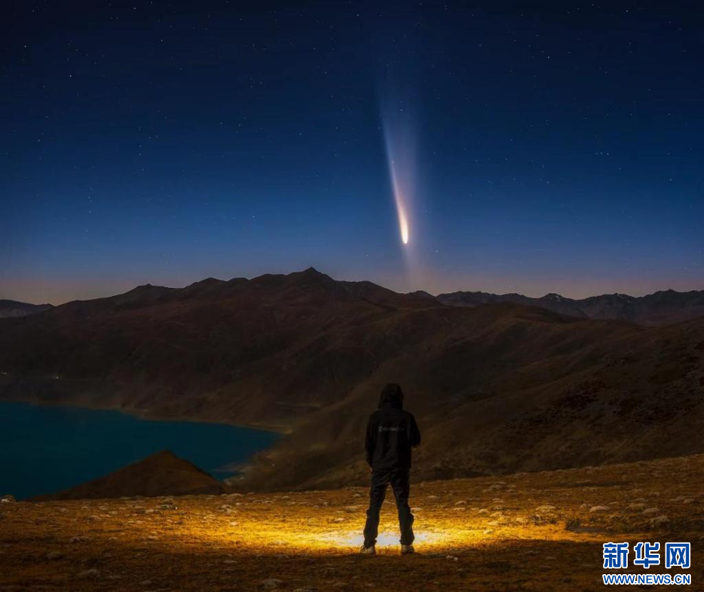 10月13日,拍攝于羊卓雍措1號觀景臺的彗星。新華網(wǎng)發(fā) 范禹杰 攝