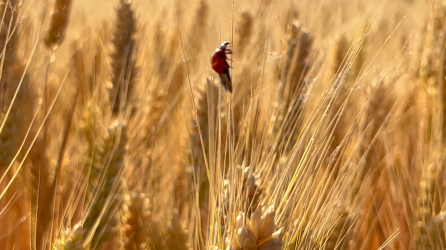 初夏時節(jié),安徽省潁上縣廣袤大地上麥香四溢。麥田在陽光下泛著金黃,麥浪滾滾,收獲在望。麥田、村落、河流、阡陌構成一幅美麗的田園風光。?
