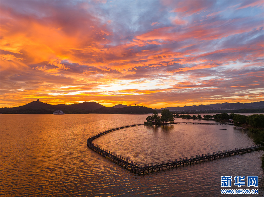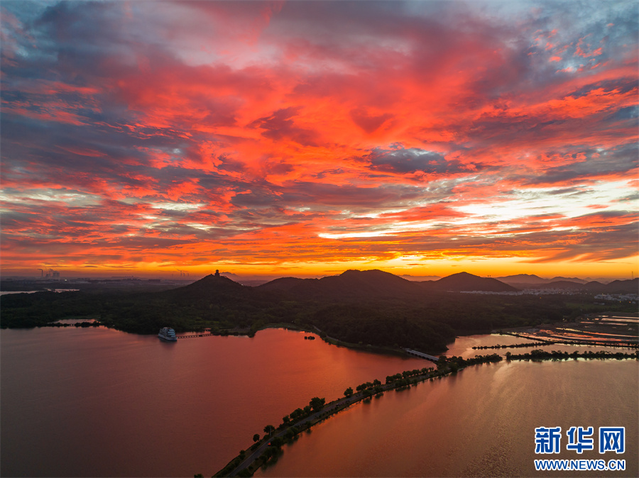 近日,安徽省池州市平天湖上空出現(xiàn)絕美朝霞景觀。新華網(wǎng)發(fā)(饒治國(guó) 攝)