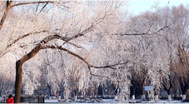 2025年12月14日,遼寧沈陽北運(yùn)河岸出現(xiàn)霧凇景觀,吸引市民駐足觀賞拍照。黃金崑攝(人民圖片網(wǎng))