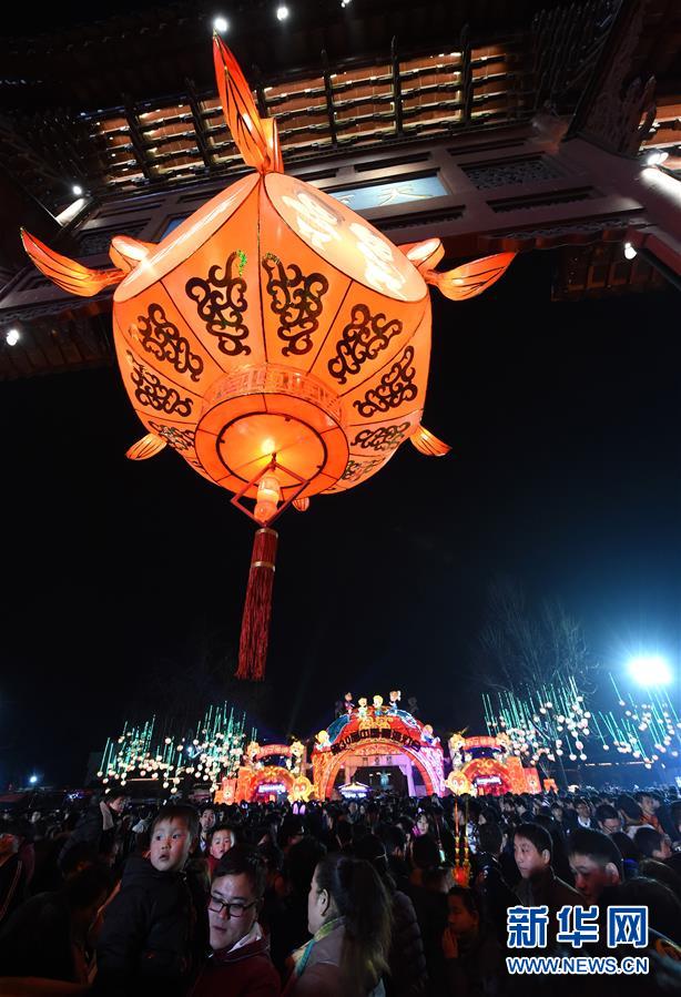 2月22日晚,游人在夫子廟景區(qū)觀燈游玩。當(dāng)晚,在江蘇南京夫子廟秦淮風(fēng)光帶舉辦的秦淮燈會彩燈齊放,人們前來觀燈鬧元宵。 新華社記者孫參攝