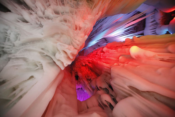 專家們稱,該冰洞位列全國(guó)一萬多個(gè)洞穴中僅有的九個(gè)冰洞之首。洞內(nèi)制冷機(jī)制最強(qiáng)、冰儲(chǔ)量最多,現(xiàn)開發(fā)近百米。分成上下五層,看冰洞須穿棉衣、戴手套,小心翼翼地游覽。通過鉆冰洞,下冰樓梯,過冰棧,可到各層觀光。每層可容納數(shù)十人。洞內(nèi)四周全是冰。由冰形成的冰柱、冰簾、冰瀑、冰花、冰佛、冰床、冰鐘、冰人、冰菩薩等,千奇百怪、不一而足。洞內(nèi)大大小小的景致或玲瓏剔透,或晶瑩奪目,或婀娜多姿,或雄偉壯麗,無不令人驚嘆,堪稱一個(gè)冰的絕妙世界。