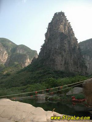 五指峰是五指峽的入口,形狀好像是伸出的五指。五指峽就是因?yàn)檫@座山峰而得名。五指峰集雄、奇、險、幽、美于一體,不僅有刀削斧劈的懸崖,又有千奇百態(tài)的山石。古人曾如此描寫五指峰:“五朵危崖五指開,亭亭玉立絕塵埃,驚濤忽漲清泉水,是否翻云覆雨來”。