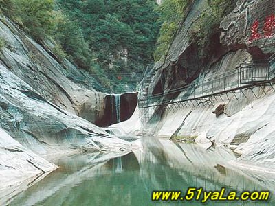 五指峽中的黑龍?zhí)端浅G宄海K年流淌不息,在這個還有一個很有趣的說法,據(jù)說每到大旱的時刻人們就到這幾來求雨,但是求雨的人一定要是屬龍和蛇的,因?yàn)槭刈o(hù)著黑龍?zhí)兜氖且粭l黑龍。清澈的山澗為來到這里的人們帶來了快樂。游人可以泛舟水上,進(jìn)行皮筏漂流。
