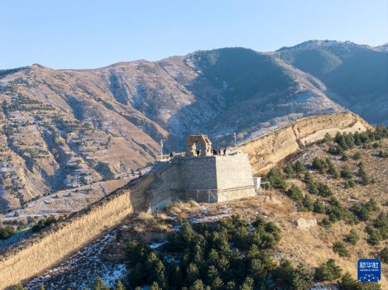 游客參觀位于朔州市山陰縣的廣武長城(無人機(jī)照片,1月6日攝)。