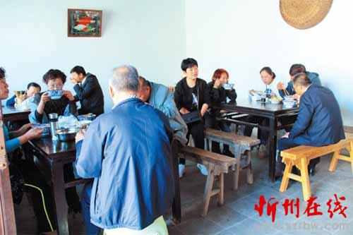 今年中秋節(jié)期間,筆者在這家小店招待了一位河北保定籍的馬姓文友。客人聽說中午要用高粱面招待他時(shí),臉上隱隱露出不悅之色。當(dāng)熱騰騰的出籠紅面魚魚端上桌時(shí),他也學(xué)著澆上臊子慢慢品嘗。只見他邊吃邊不住地點(diǎn)頭,臉上也多云轉(zhuǎn)晴了。當(dāng)一碗紅面魚魚下肚后,他雙手豎起大拇指,夸贊這頓別有風(fēng)味的粗糧美餐。友人說,在他們那里有一句歇后語(yǔ):日本人吃高粱面——沒有法子。在他的印象中,“高粱黑豆乃驢馬之料”,人不到最困難的時(shí)候是不會(huì)吃的。想不到忻州人竟能把這種粗糧做得如此美味!
