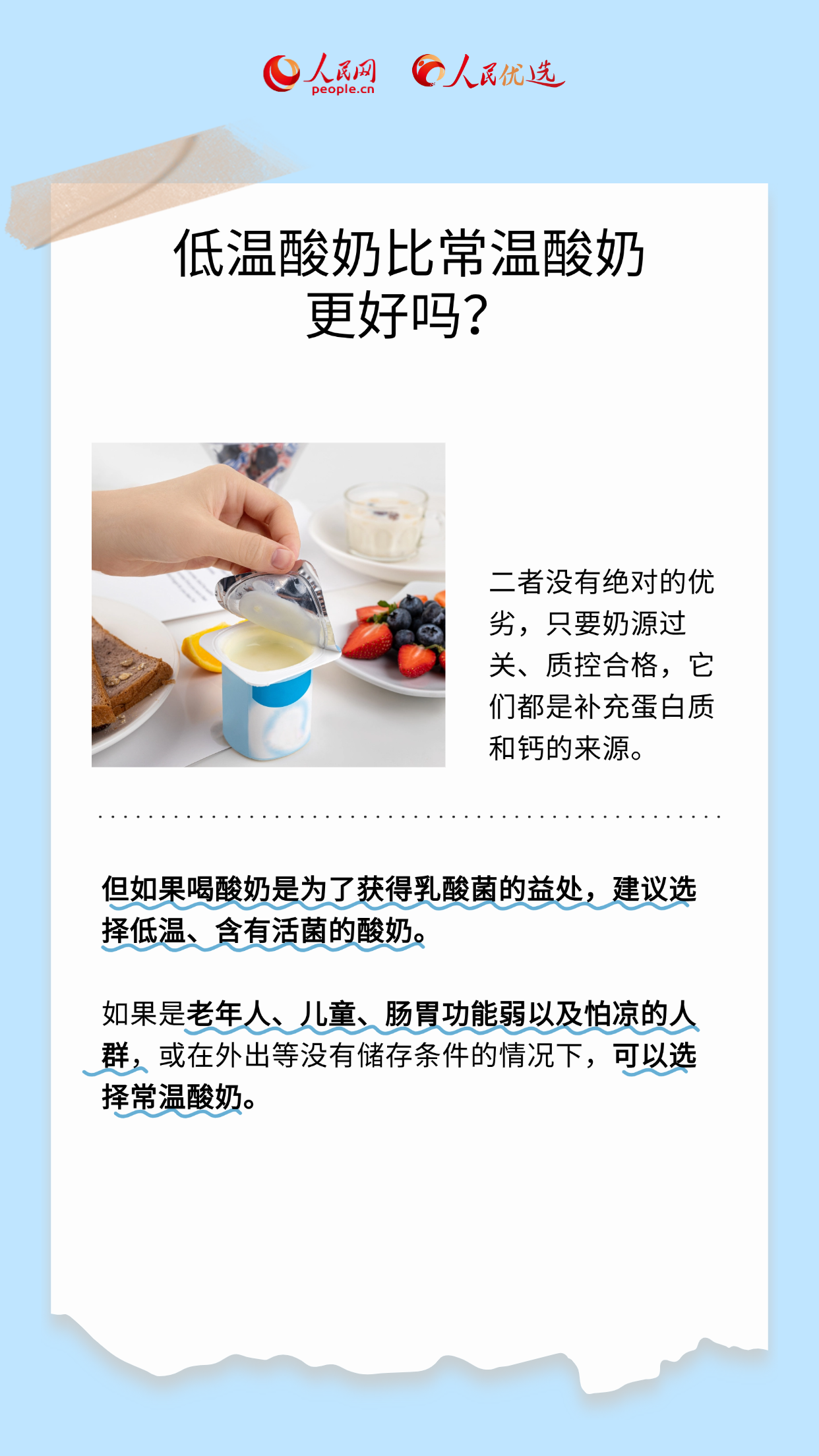 酸奶營養(yǎng)又美味,可面對市面上琳瑯滿目的產(chǎn)品,您是否也有這些疑問:酸奶主要分為哪些類型?成年人每日適合飲用多少?在選購時又該注意哪些方面?不少人,尤其是減肥人士,喜歡用酸奶代餐,但若想吃得健康,科學(xué)挑選與適量飲用必不可少。本期《人民優(yōu)選來了》將為您一一梳理,帶您解鎖酸奶的食用小知識,一起來看看吧!