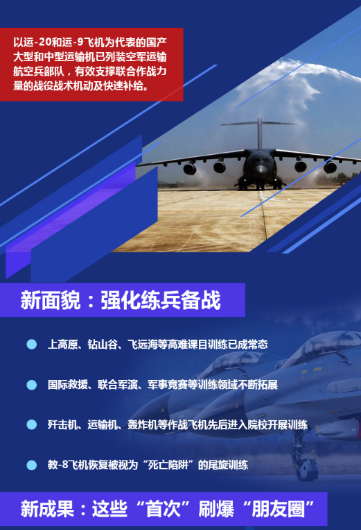 今年是新中國(guó)成立70周年,也是中國(guó)空軍建軍70周年。中國(guó)空軍以習(xí)近平強(qiáng)軍思想為指引,緊緊圍繞黨在新時(shí)代的強(qiáng)軍目標(biāo),部署和推進(jìn)了一系列戰(zhàn)略布局和戰(zhàn)略舉措。