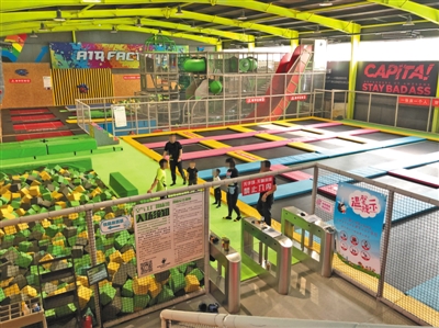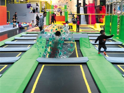 近日,昌平區(qū)沙河一家蹦床樂(lè)園內(nèi),不少家長(zhǎng)領(lǐng)著孩子在里面玩耍,也有不少成年人結(jié)伴放松。場(chǎng)館內(nèi)沒(méi)有劃分成人和兒童區(qū),未見(jiàn)有工作人員維持秩序,除蹦床外場(chǎng)地內(nèi)還有一些其他輔助游樂(lè)設(shè)備。 新京報(bào)記者 張靜姝 攝