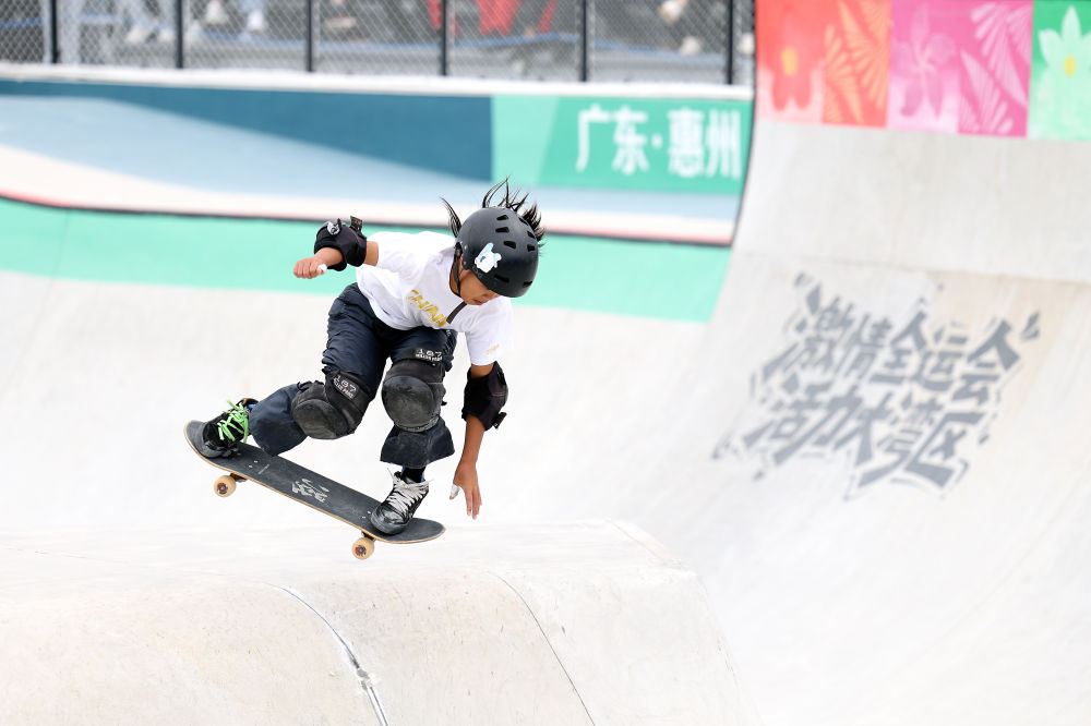 滑板賽場更是少年天下。當天決出的4枚金牌中的3枚被青少年選手獲得,摘得獎牌的12人中有9人尚未成年。當天年齡最小的冠軍產(chǎn)生在女子碗池,13歲的廣東選手鄒明珂以0.32分的微弱優(yōu)勢反超12歲的山東選手孟令妍,拿下金牌。