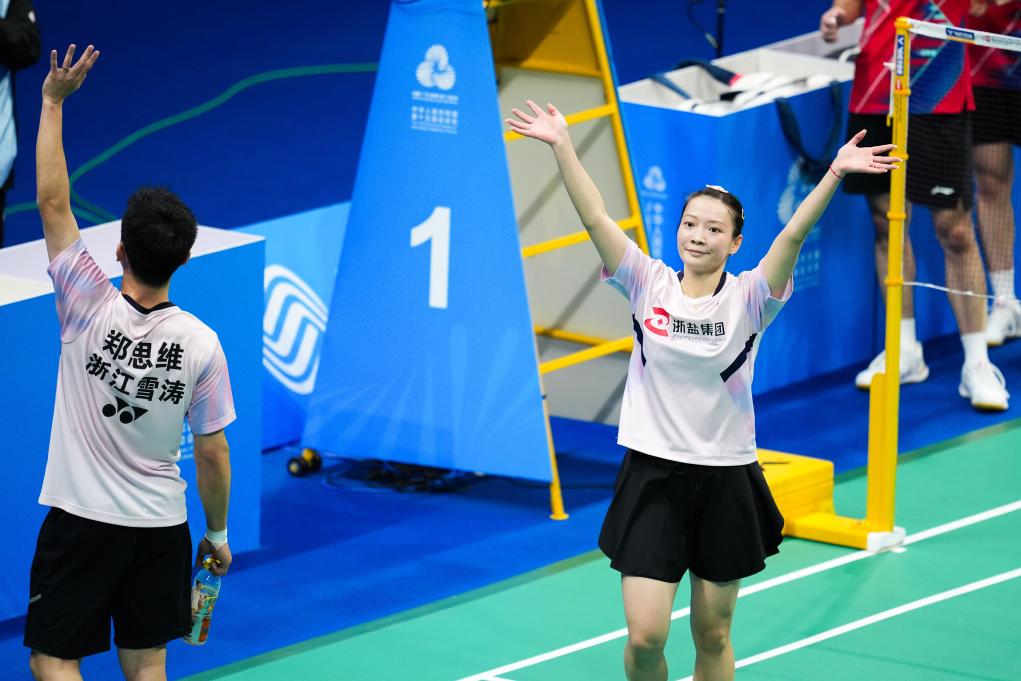 有的告別帶著些許遺憾,有的則收獲圓滿。在羽毛球館里,當(dāng)混雙決賽最后一球落地時,鄭思維只是高舉雙臂,黃雅瓊則輕輕揮了揮手。浙江隊的“雅思”組合2:0完勝湖南隊的周志宏/魏雅欣,用一枚全運(yùn)會金牌為自己的傳奇畫下句點。
