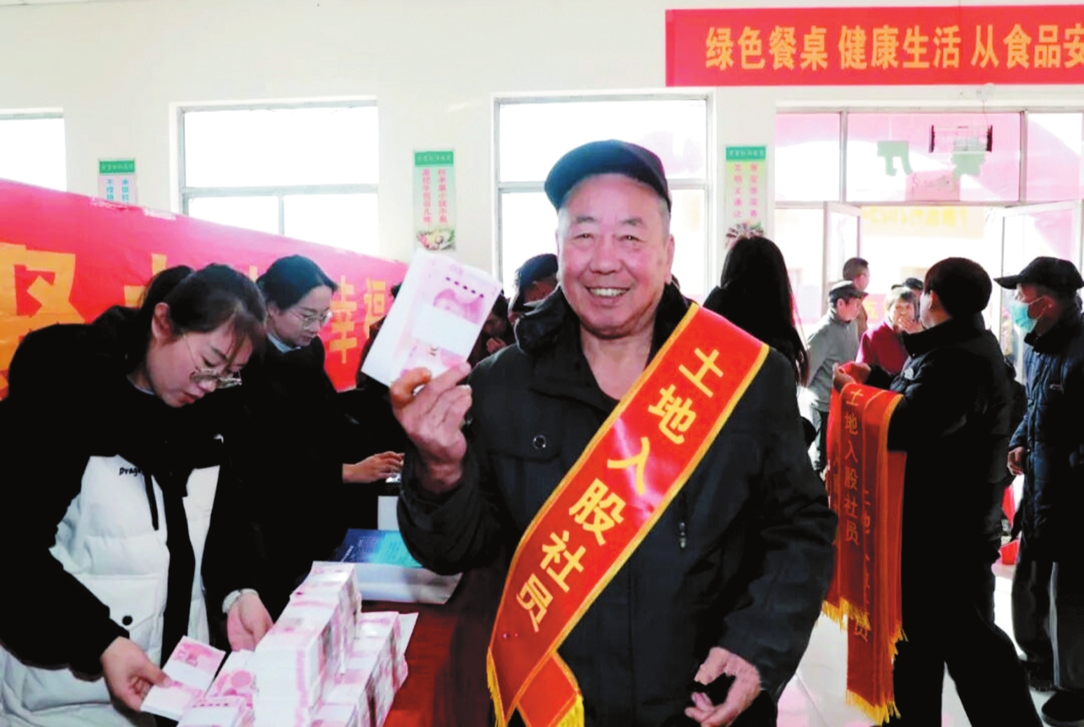 分紅大會(huì)現(xiàn)場(chǎng)人頭攢動(dòng),氣氛熱烈。長(zhǎng)者社員、普通社員、土地入股社員代表依次上臺(tái)發(fā)言并領(lǐng)取分紅金,分享了參與項(xiàng)目后的增收獲得感,生動(dòng)詮釋了“共富”的內(nèi)涵。統(tǒng)種富民專業(yè)合作社負(fù)責(zé)人介紹了項(xiàng)目運(yùn)營(yíng)情況,詳細(xì)講解了“統(tǒng)種共富”模式下土地集約、產(chǎn)業(yè)協(xié)同的實(shí)踐成果。相關(guān)單位負(fù)責(zé)人作表態(tài)發(fā)言,明確了后續(xù)支持鄉(xiāng)村產(chǎn)業(yè)發(fā)展的工作方向。