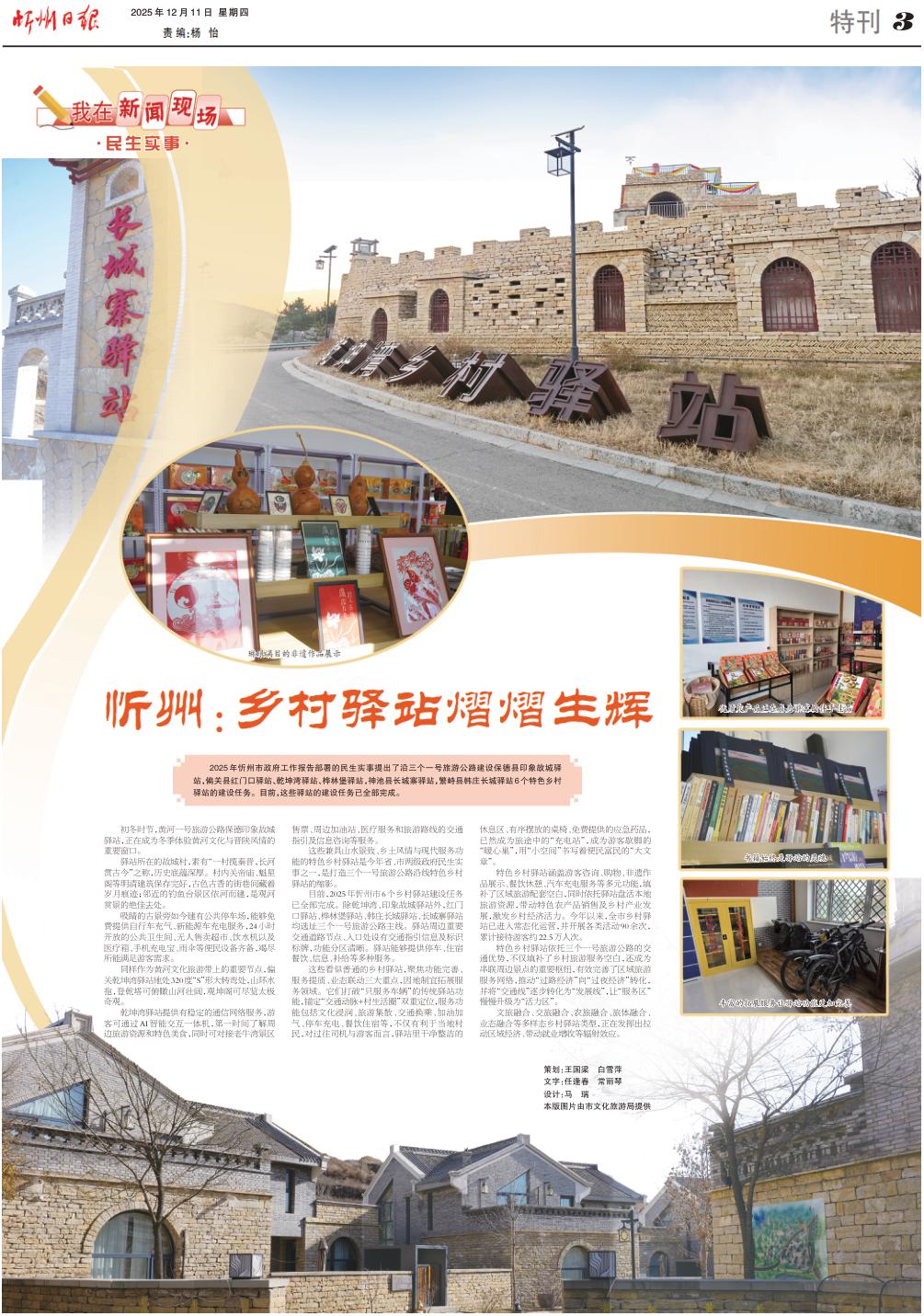 2025年忻州市政府工作報告部署的民生實事提出了沿三個一號旅游公路建設(shè)保德縣印象故城驛站,偏關(guān)縣紅門口驛站、乾坤灣驛站、樺林堡驛站,神池縣長城寨驛站,繁峙縣韓莊長城驛站6個特色鄉(xiāng)村驛站的建設(shè)任務(wù)。目前,這些驛站的建設(shè)任務(wù)已全部完成。