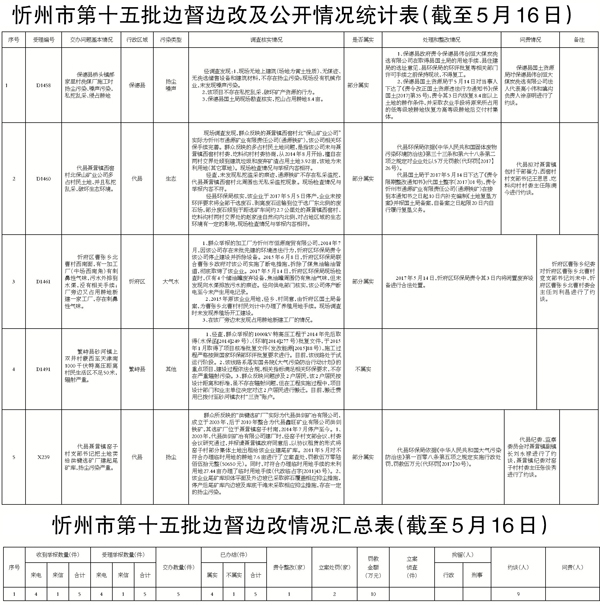 我市高度重視,立即組織查處,截至5月16日,督辦的5件群眾反映問題已辦結。其中,確認不屬實1件;確認部分屬實4件。對于部分屬實已辦結的環(huán)保問題,分別采取了相應處理措施,共罰款10萬元,對9名相關責任人進行約談。對5件群眾反映問題調(diào)查處理情況進行了信息公開。
