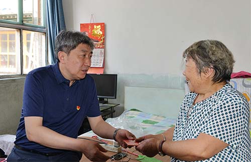在建安鄉(xiāng)東建安村,朱曉東走訪看望慰問(wèn)困難老黨員康艮文、趙鳳蘭,了解家庭經(jīng)濟(jì)情況、子女工作、身體狀況等,希望老黨員一如既往發(fā)揚(yáng)和繼承黨的優(yōu)良傳統(tǒng),發(fā)揮傳幫帶作用,支持幫助村黨組織更好地發(fā)揮戰(zhàn)斗堡壘作用,更好地團(tuán)結(jié)群眾、服務(wù)群眾。東冶鎮(zhèn)永興村趙煥珍老人是新中國(guó)成立前入黨的老黨員,盡管年過(guò)九旬,但身體硬朗、精神矍鑠。朱曉東詢問(wèn)老人的身體情況和家庭子女情況,囑咐家人照顧好老人的生活起居,讓老人安度晚年。朱曉東指出,老黨員是黨和國(guó)家的寶貴財(cái)富,我們永遠(yuǎn)不會(huì)忘記老黨員為黨的事業(yè)和新中國(guó)革命、建設(shè)和改革各個(gè)時(shí)期作出的貢獻(xiàn),要一如既往關(guān)心老黨員、困難黨員的生活,積極主動(dòng)幫助他們解決實(shí)際困難,讓廣大老黨員和生活困難黨員切實(shí)感受到黨組織的關(guān)懷與溫暖。走訪慰問(wèn)中,朱曉東強(qiáng)調(diào),中國(guó)共產(chǎn)黨建黨99年是為民族獨(dú)立、人民解放、國(guó)家富強(qiáng)奮斗的99年,每一個(gè)黨員都要始終牢記“為了誰(shuí)、依靠誰(shuí)、我是誰(shuí)”,始終牢記入黨誓詞,增強(qiáng)“四個(gè)意識(shí)”、堅(jiān)定“四個(gè)自信”、做到“兩個(gè)維護(hù)”,努力為黨工作,努力為群眾服務(wù),充分發(fā)揮廣大黨員在改革發(fā)展穩(wěn)定中的先鋒模范作用,凝聚廣大群眾緊緊團(tuán)結(jié)在黨的周?chē)?,形成全市加快轉(zhuǎn)型發(fā)展,率先蹚出新路的強(qiáng)大力量。