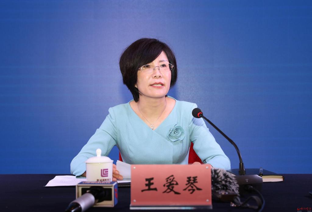 王愛(ài)琴介紹大會(huì)整體情況并回答記者提問(wèn)。范濤攝