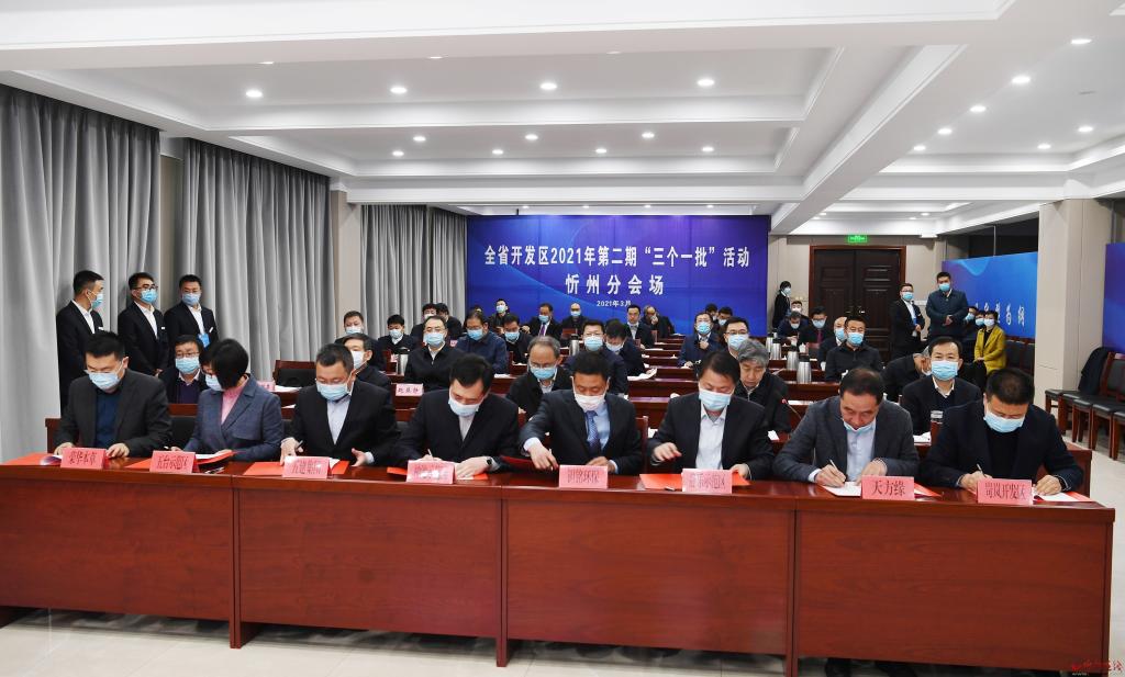 與全省活動同步,忻州分會場舉行了項目集中簽約儀式。在鄭連生、朱曉東等與會人員的共同見證下,忻州經(jīng)濟開發(fā)區(qū)新型高端建筑裝飾材料生產(chǎn)及倉儲物流基地項目、原平經(jīng)濟技術開發(fā)區(qū)年產(chǎn)2.5萬噸建筑配套輔材項目、繁峙經(jīng)濟技術開發(fā)區(qū)新建300MW光伏發(fā)電項目、定襄經(jīng)濟技術開發(fā)區(qū)基于5G+云平臺風力發(fā)電環(huán)鍛件智能制造擴建項目、岢嵐經(jīng)濟技術開發(fā)區(qū)玻璃棉生產(chǎn)項目、靜樂現(xiàn)代農(nóng)業(yè)產(chǎn)業(yè)示范區(qū)杜家村鎮(zhèn)集中供熱熱源廠建設工程特許經(jīng)營BOT項目、神池現(xiàn)代農(nóng)業(yè)產(chǎn)業(yè)示范區(qū)基礎設施及標準廠房建設PPP項目、五臺現(xiàn)代農(nóng)業(yè)產(chǎn)業(yè)示范區(qū)臺黨參種植及加工項目8個代表性項目分兩批進行簽約。