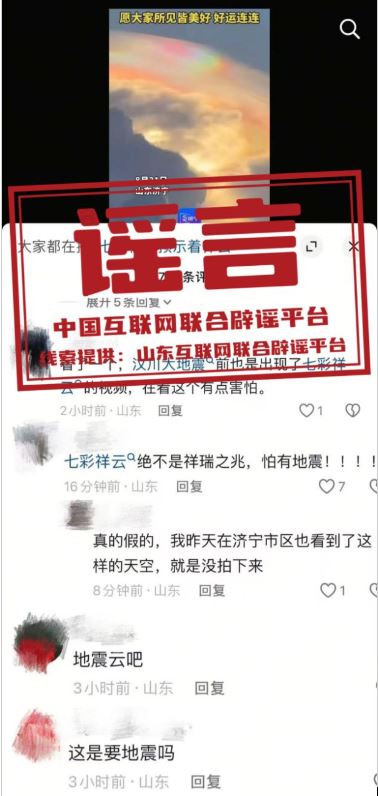 謠言:山東濟(jì)寧出現(xiàn)“祥云”為地震前兆?