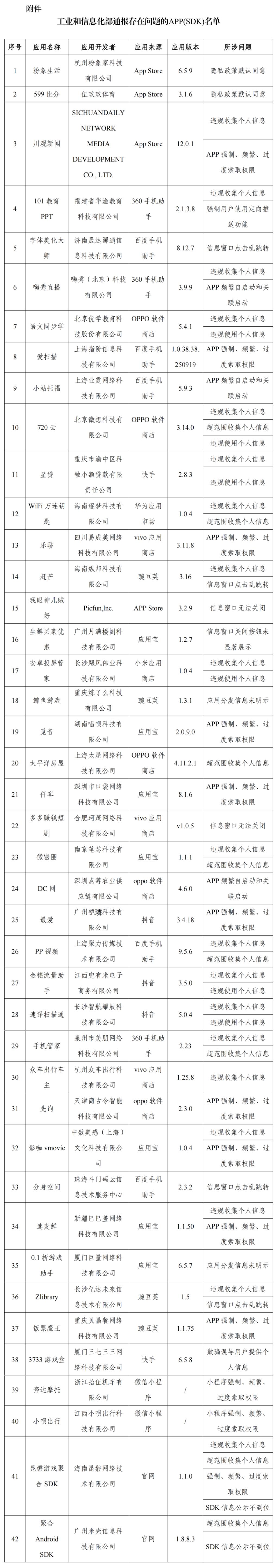 通報(bào):工信部通報(bào)!這42款A(yù)PP及SDK存在侵害用戶權(quán)益行為
